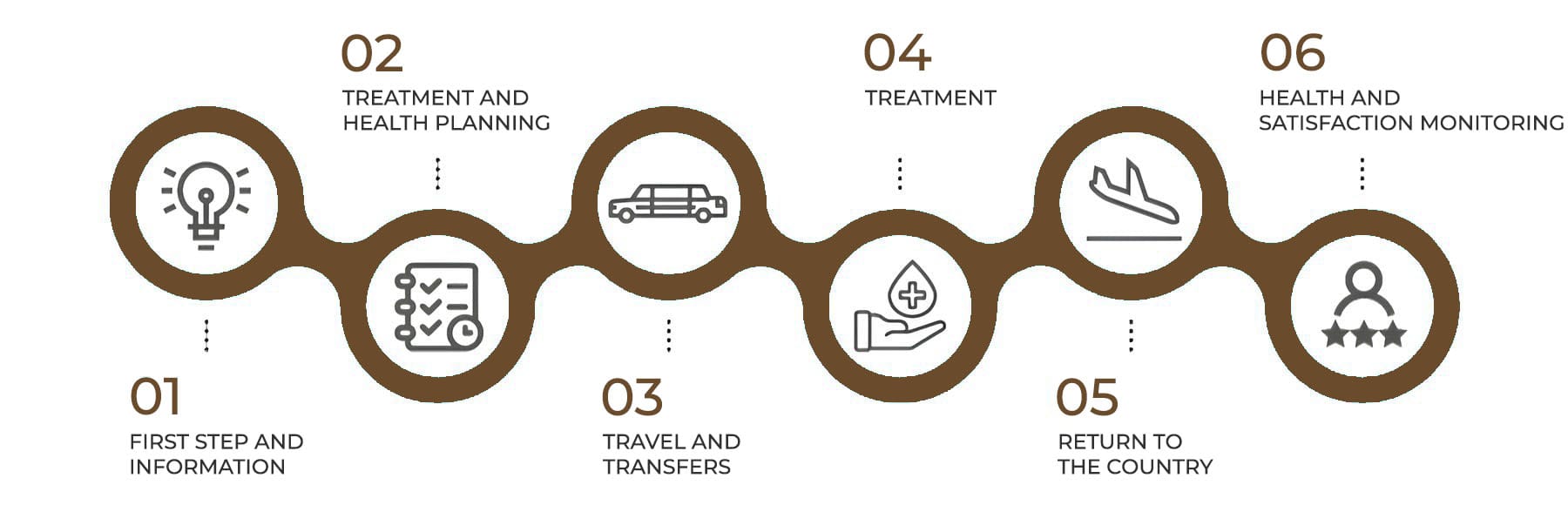 Our company, which handles the treatment organizations of hundreds of people every year in the field of health tourism, partners with patients throughout their treatment process and continually improves its services in line with the support and guidelines of the Ministry of Health and the Ministry of Tourism.
